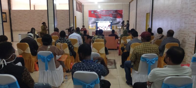 BINTUNI || Mediaprorakyat.com – Dewan Perwakilan Rakyat Daerah (DPRD) Kabupaten Teluk Bintuni Badan Pembentukan Peraturan Daerah (Bapemperda) melaksanakan Sosialisasi Peraturan Daerah Prakarsa Usul Inisiatif DPRD Kabupaten Teluk Bintuni di Sekretariat sementara DPRD Kabupaten Teluk Bintuni (Ruko Panjang) , Jumat sore (13/8/2021).