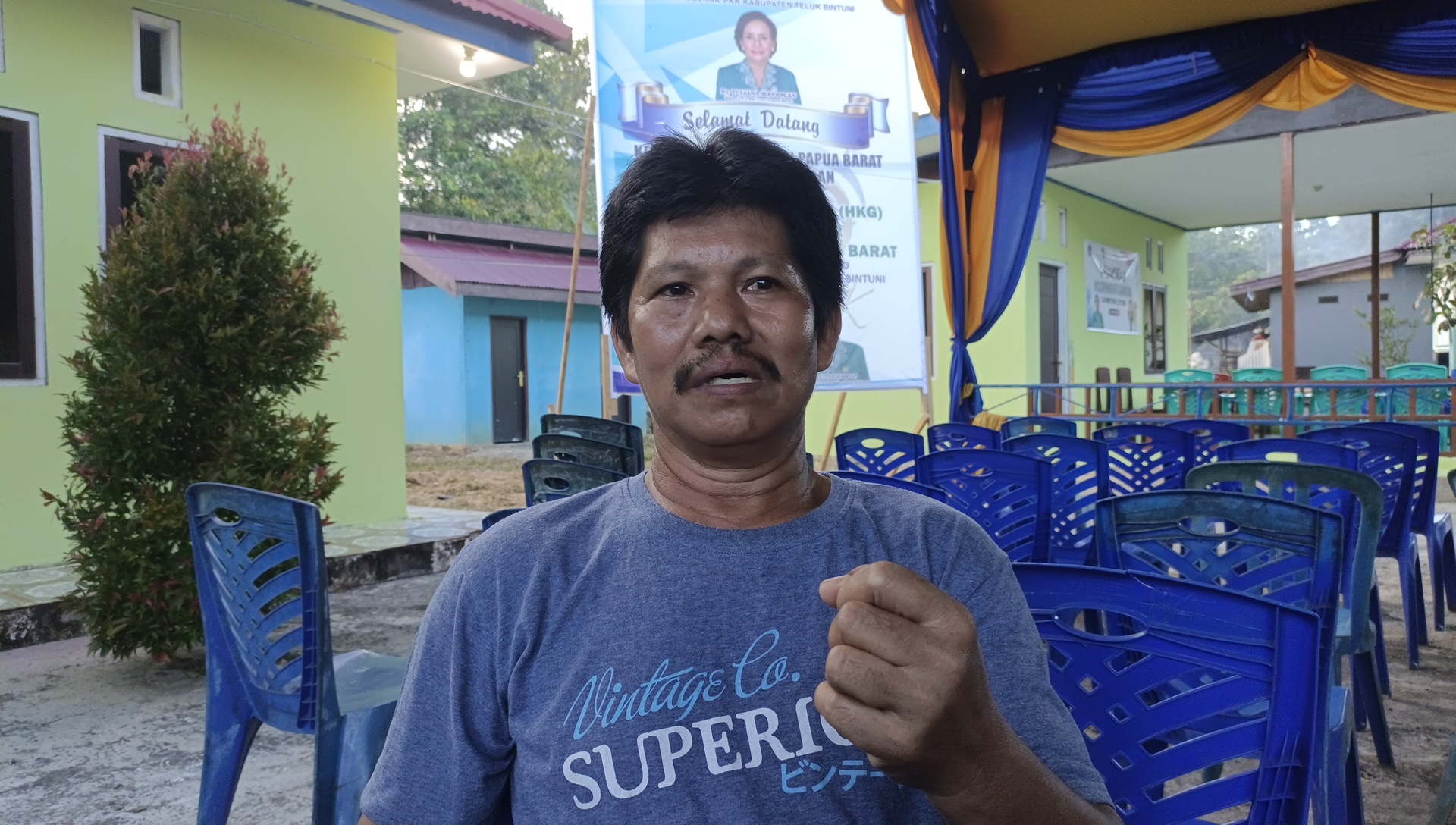 Kepala Distrik Mayado saat di wawancarai wartawan di Balai Kampung Atibo, Senin (25/4/2022) sore.