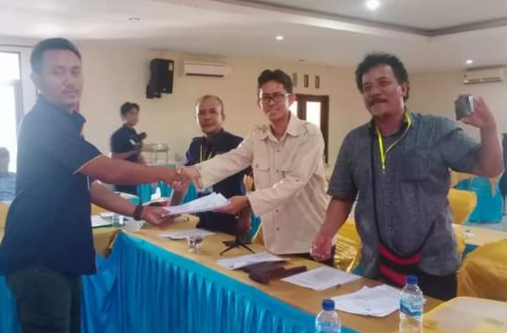 Keterangan Gambar : Ketua Persatuan Wartawan Indonesia ( PWI ) Papua Barat ( Kemeja Putih ) saat menghadiri Konferensi II PWI Teluk Bintuni. [ MPR ]