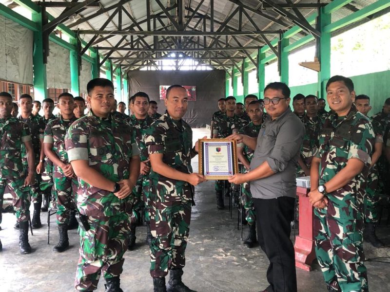 Penyerahan penghargaan tersebut dilakukan oleh Kasbrigif 26/GP Georgius Luki Ariesta, S.I.P, M.Si kepada Kabid Wasdin pada Badan Kesbangpol Hendri seusai kegiatan Penyuluhan oleh Kesbangpol kepada jajaran personel Brigif 26/GP dan Yonif 763/SBA sebanyak 60 orang. mpr-01