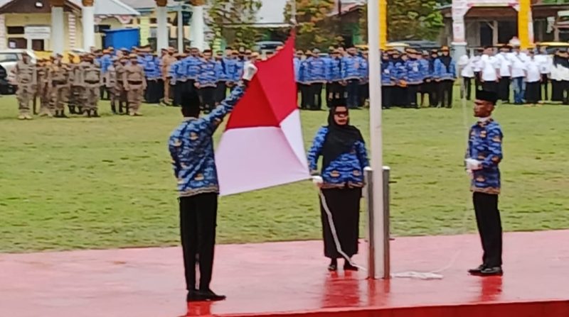 Meski diguyur hujan sejak pagi, upacara tetap berlangsung dengan khidmat dan penuh semangat. Para peserta upacara dari unsur TNI, Polri, ASN, pelajar, dan masyarakat tetap berdiri tegak mengikuti jalannya prosesi hingga selesai.